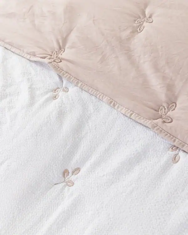 Κουβερλί king size από microfiber για διπλό κρεβάτι, ιδανικό για όλες τις εποχές. Το 100% microfiber προσφέρει απαλή υφή και αντοχή, ενώ η λευκό-ροζ απόχρωση προσθέτει φρεσκάδα και κομψότητα στον χώρο του υπνοδωματίου.