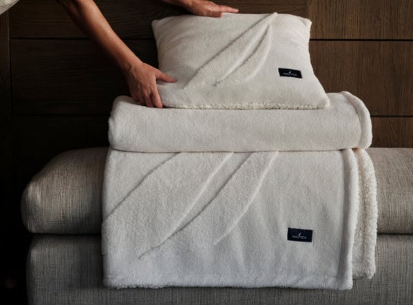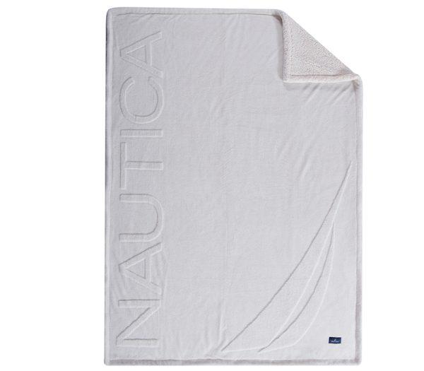 Κουβέρτα καναπέ Nautica Coast από την συνεργασία Nef-Nef Homeware X Nautica σε διάσταση 130×180 και εκρού χρώμα. Αποτελεί διπλής όψης καθώς η μία του πλευρά είναι μονόχρωμη και η άλλη διαθέτει ανάγλυφο λεκτικό NAUTICA, το logo του brand, καθώς και αντίστοιχη ετικέτα κάτω δεξιά. Είναι κατασκευασμένη στην μία πλευρά από γούνα sherpa και στην άλλη από fleece, χαρίζοντας έτσι πολύ απαλή αίσθηση. Μπορεί να δώσει μία μοντέρνα διακοσμητική νότα τόσο στο σαλόνι σας σε συνδυασμό με το αντίστοιχο διακοσμητικό μαξιλάρι, όσο και στο κρεβάτι σας σε συνδυασμό με τα προϊόντα ύπνου Nef-Nef Homeware X Nautica !