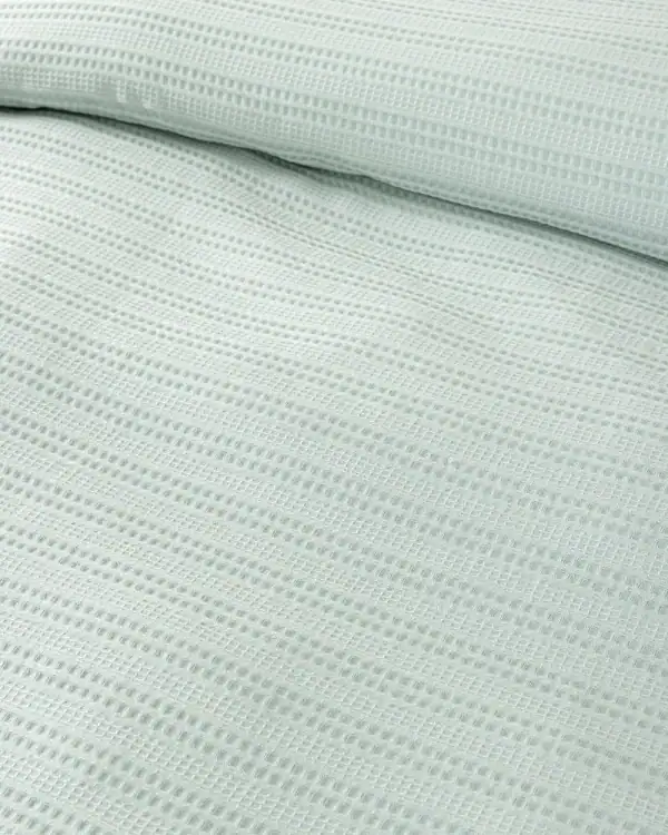 Πικέ ύφασμα που προσδίδει ανθεκτικότητα και διακριτή υφή, διατηρώντας τη φόρμα μετά από πολλαπλές πλύσεις. Χρώμα μέντα που προσθέτει φρεσκάδα στη διακόσμηση του υπνοδωματίου. Κατάλληλη για τους ανοιξιάτικους και καλοκαιρινούς μήνες, χάρη στη φυσική σύνθεση βαμβακιού που εξασφαλίζει άνεση στις υψηλές θερμοκρασίες.