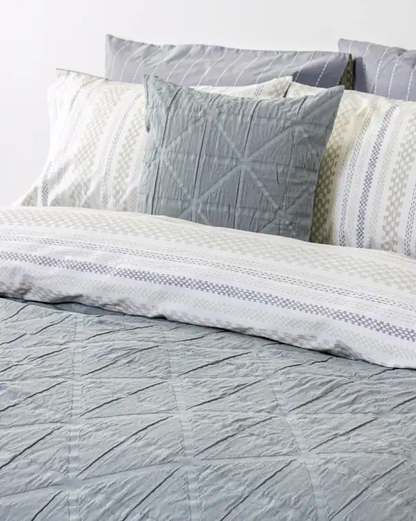 Jacquard ύφασμα που προσδίδει ανθεκτικότητα και διακριτή υφή, διατηρώντας τη φόρμα μετά από πολλαπλές πλύσεις. Γκρι χρώμα που προσθέτει βάθος στη διακόσμηση του υπνοδωματίου. Κατάλληλη για τους ανοιξιάτικους και καλοκαιρινούς μήνες, χάρη στη φυσική σύνθεση βαμβακιού που εξασφαλίζει άνεση στις υψηλές θερμοκρασίες.