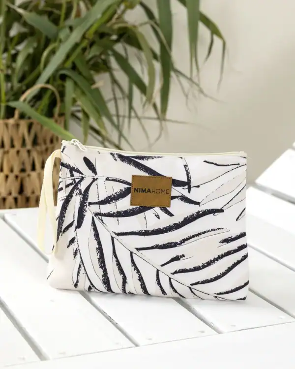 Το νεσεσέρ θαλάσσης Nima Home σε διαστάσεις 25 x 17 εκ. συνδυάζει λειτουργικότητα και κομψότητα για την παραλία. Κατασκευασμένο από 100% microfiber, προσφέρει ανθεκτικότητα στην υγρασία και εύκολο καθάρισμα, ιδανικό για χρήση σε εξωτερικούς χώρους. Το χρώμα μπεζ σε συνδυασμό με μαύρες και εκρού λεπτομέρειες δημιουργεί μια διακριτική και μοντέρνα αισθητική.