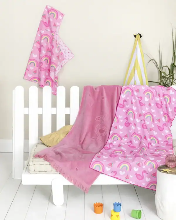 Ο συνδυασμός των αποχρώσεων ροζ και φούξια προσθέτει ζωντάνια και χαρούμενο χαρακτήρα, κάνοντας την πετσέτα ελκυστική για τα παιδιά. Η διάστασή της 70 x 140 εκ. προσφέρει άνεση και επαρκή κάλυψη για μικρά παιδιά. Ιδανική επιλογή για τους καλοκαιρινούς μήνες, προσφέροντας λειτουργικότητα και στυλ.