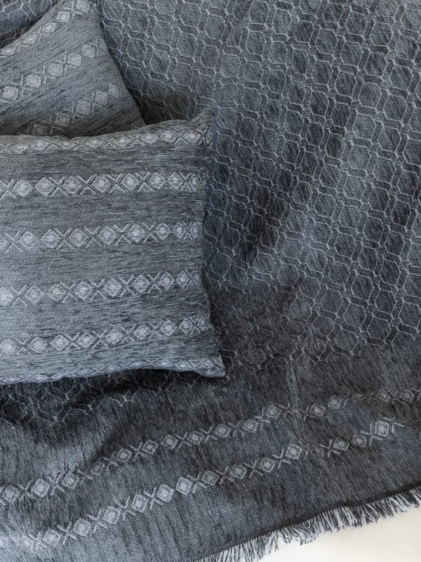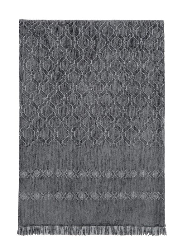 Η σύνθεσή του από chenille περιλαμβάνει 55% ακρυλικό, 20% πολυεστέρα και 25% βαμβάκι, προσφέροντας ανθεκτικότητα και απαλή υφή που αγκαλιάζει το δέρμα. Το γκρι χρώμα προσδίδει διακριτική κομψότητα και ευκολία στη συνδυαστική διακόσμηση του χώρου.