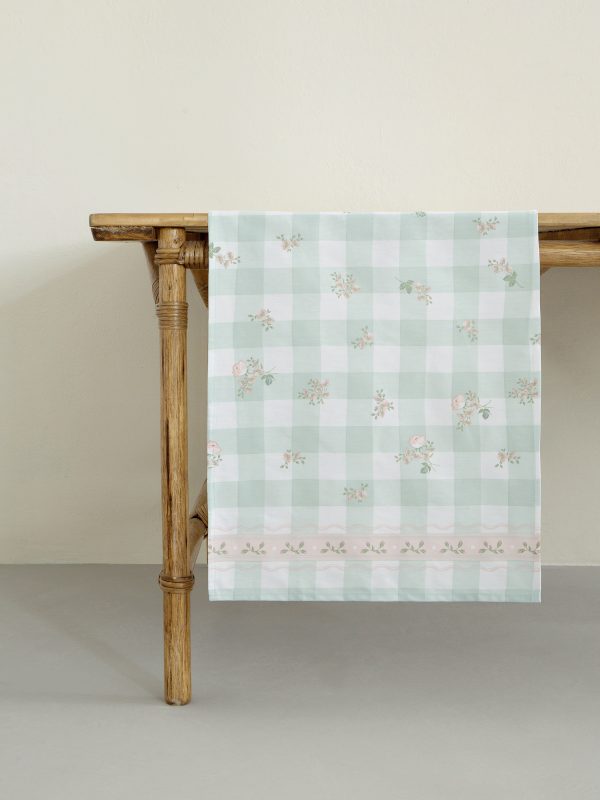 Διακοσμητικός runner τραπεζιού από 100% βαμβάκι, ιδανικός για να προσθέσει χρώμα και φινέτσα στο σαλόνι ή την τραπεζαρία σας. Οι αποχρώσεις μέντας και ροζ δημιουργούν μια δροσερή και ζωντανή ατμόσφαιρα, ενώ το βαμβακερό ύφασμα εξασφαλίζει φυσική αίσθηση και ανθεκτικότητα. Με διαστάσεις 48 x 150 εκ., ταιριάζει εύκολα σε κάθε τραπέζι ή επιφάνεια.