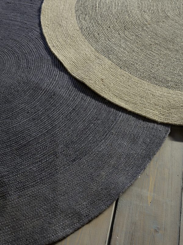 Στρογγυλό χαλί 90 εκατοστών από 100% jute, ιδανικό για να ανανεώσει το σαλόνι σας με φυσική υφή και ανθεκτικότητα. Το γκρι χρώμα του προσφέρει διακριτική κομψότητα και ευκολία στην εναρμόνιση με διάφορα στιλ διακόσμησης.