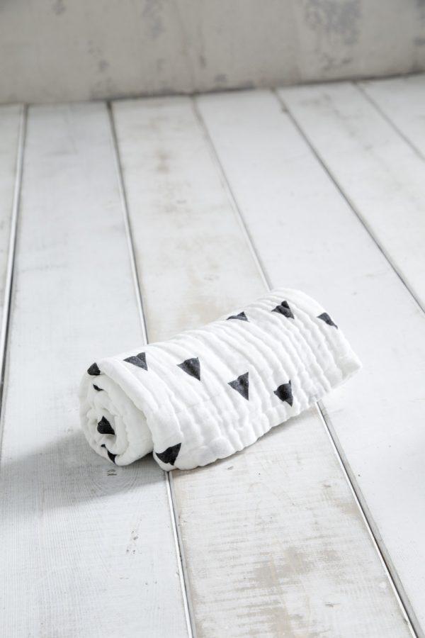 Βαμβακερή βρεφική κουβέρτα αγκαλιάς, ιδανική για τους ανοιξιάτικους και καλοκαιρινούς μήνες. Το 100% βαμβάκι εξασφαλίζει διαπνοή και απαλή αίσθηση στο δέρμα, ενώ οι διακριτικές αποχρώσεις λευκού και γκρι ταιριάζουν εύκολα σε κάθε βρεφικό δωμάτιο.