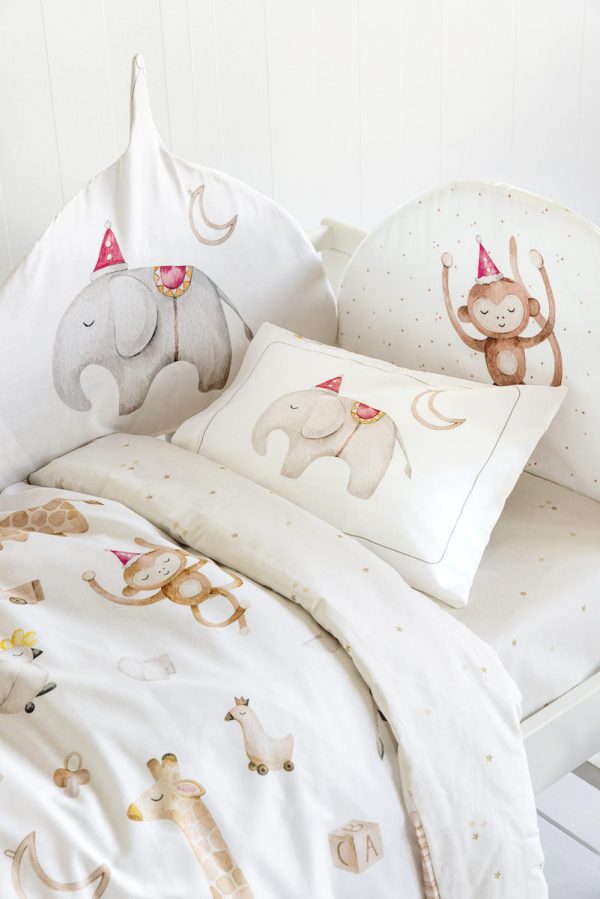 Σχεδιασμένη ειδικά για κούνιες, προστατεύει το βρέφος από κτυπήματα ενώ το παιχνιδιάρικο μοτίβο Zoo Party προσθέτει ευχάριστη διάθεση στον χώρο. Η βαμβακερή σύνθεση επιτρέπει εύκολο πλύσιμο και ανθεκτικότητα στη χρήση.